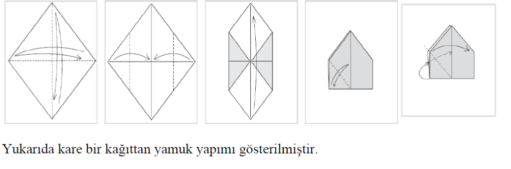 Japonca, “katlanmış kağıt” anlamına gelen origami, kağıt katlama sanatı olarak literatüre girmiştir. Origami, yapıştırıcı ve kağıt kullanmadan sadece katlayarak çeşitli figürler oluşturma sanatıdır. Parça sayısında sınır yoktur ve aynı parçalar kullanılarak birçok değişik figür üretilebilir. Origamide genel olarak kare şeklinde kâğıt kullanılsa da kâğıdın şeklinde bir sınırlama yoktur (Tuğrul ve Kavici, 2002). Origami ile öğretmenin ilk ve en belirgin faydası öğrenciler için eğlenceli ve motive edici olmasıdır. Ayrıca origami, hassas çalışmanın ve talimatları takip etmenin değerini öğretir. Öğrenciler, bir şekil düzgün şekilde sıralanmadığında veya diyagramla eşleşmediğinde istenilen sonuca ulaşamazlar. Origami, ince motor becerilerinin geliştirilmesine yardımcı olur ve bu da bilişsel gelişimin diğer alanlarını geliştirir. Hepsinden iyisi, origami bir keşif duygusu sunar (Baicker, 2004).